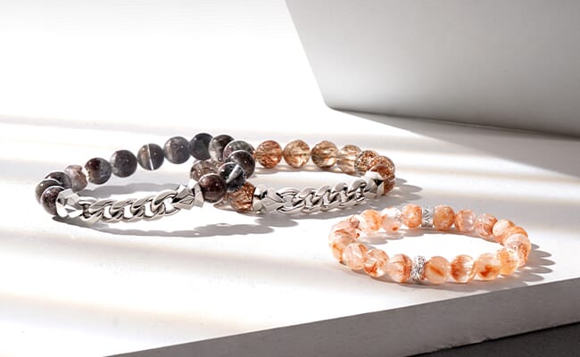 Explore the Men's Nuummite Beaded Bracelet and Women's Double Chain Bracelet of Luck with Black Spinel.