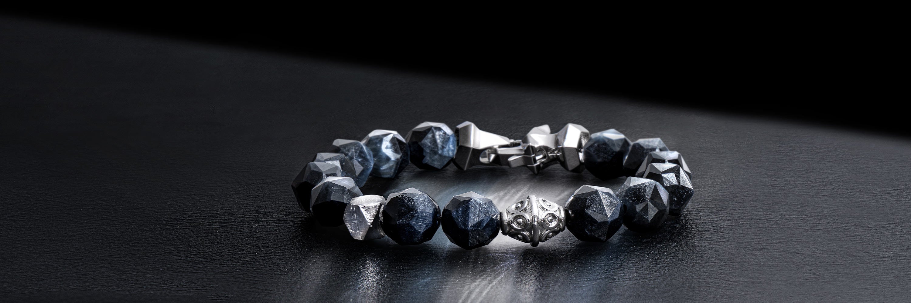 Explore AWNL's exquisite collection of meteorite bracelets, handcrafted from premium Swedish Muonionalusta meteorite, sterling silver, and potent gemstones.