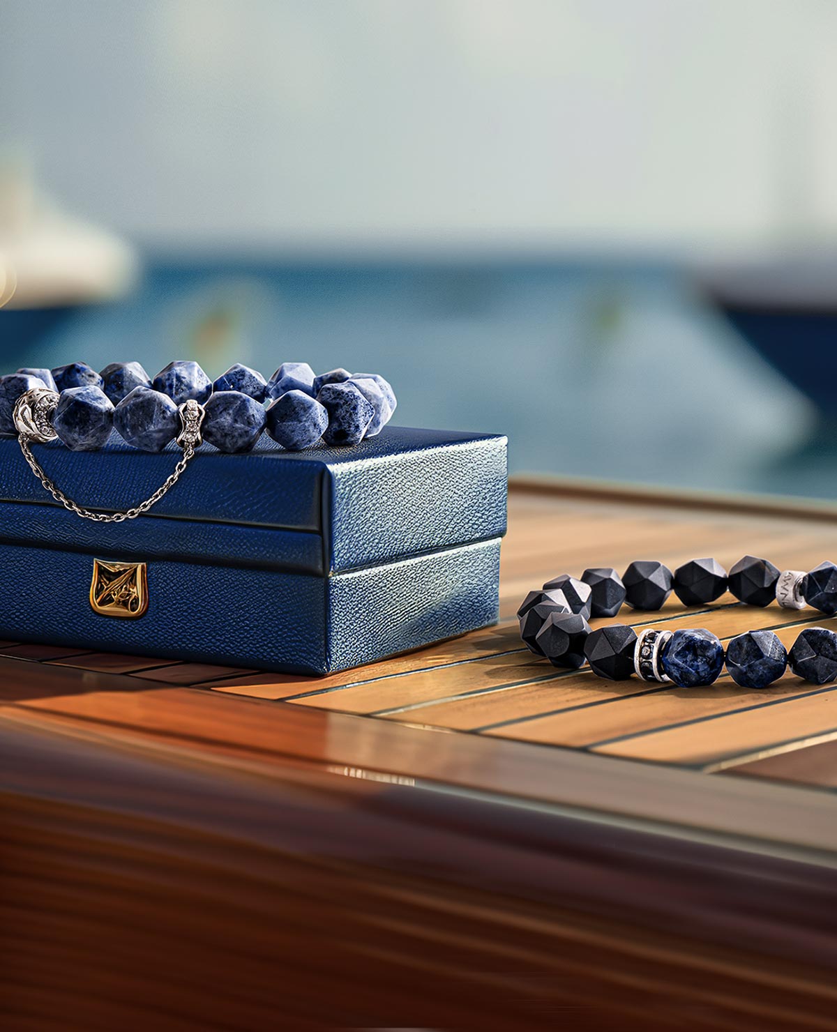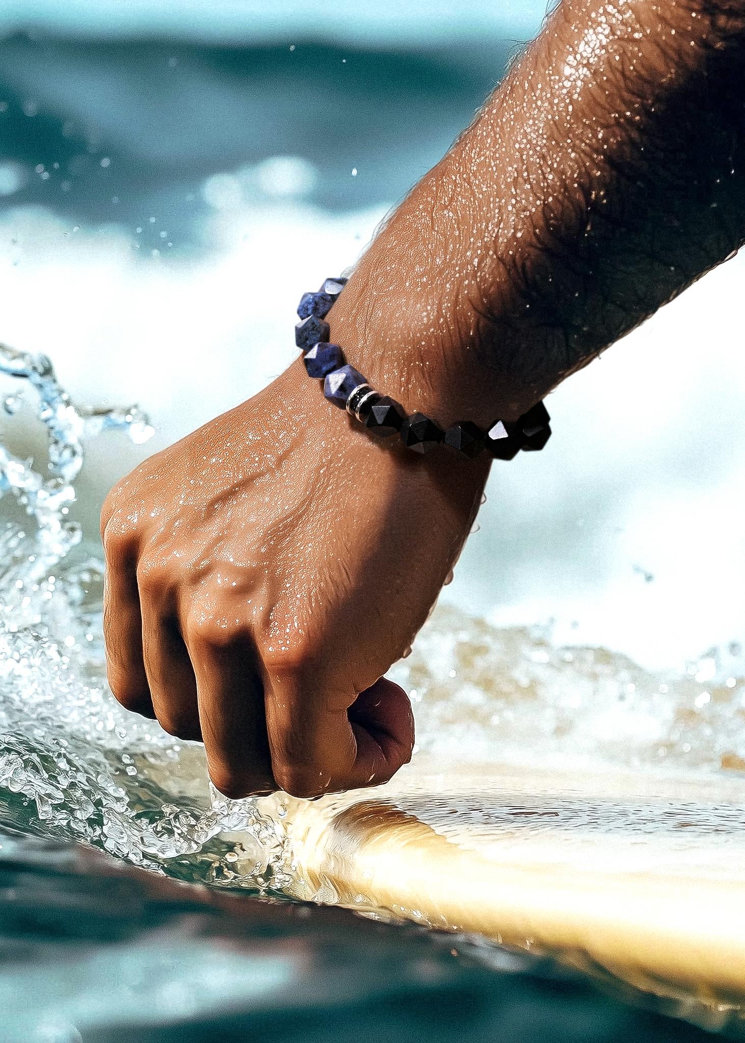 Crafted from Sodalite, Dumortierite, and Onyx, each piece embodies the ocean's boundless strength and sacred protection.