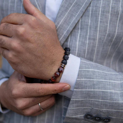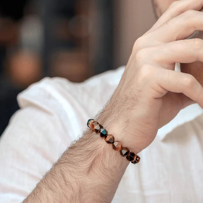This bead bracelet is a tribute to nature's artistry, a seamless blend of Onyx, Tiger Eye, Dumortierite, and Bloodstone. It's a wearable connection to the elements, each bead a token of strength, wisdom, patience, and vitality. Designed with an adjustable drawstring, it offers a personalized touch of comfort, making it not just an accessory, but a part of your journey.
