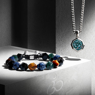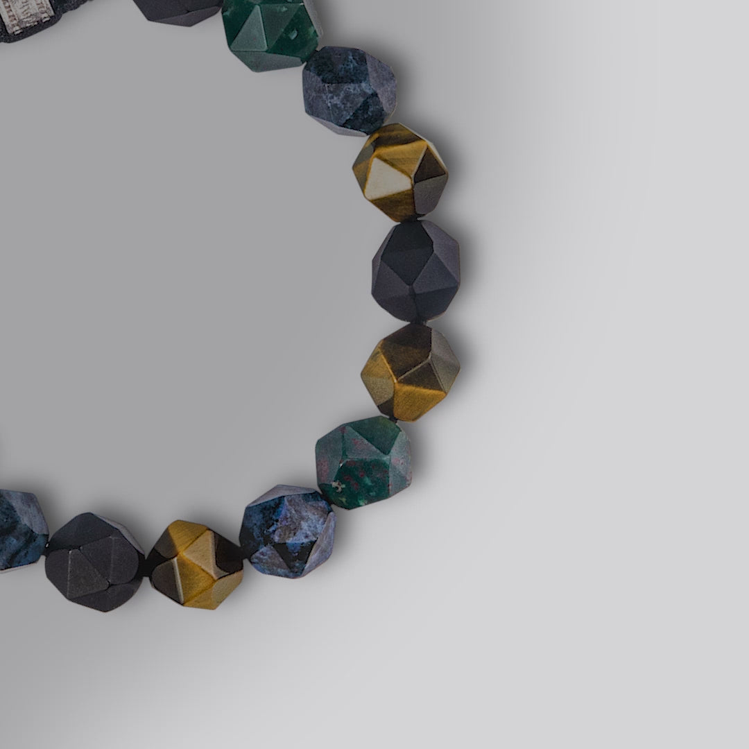 This bead bracelet is a tribute to nature's artistry, a seamless blend of Onyx, Tiger Eye, Dumortierite, and Bloodstone. It's a wearable connection to the elements, each bead a token of strength, wisdom, patience, and vitality. Designed with an adjustable drawstring, it offers a personalized touch of comfort, making it not just an accessory, but a part of your journey.