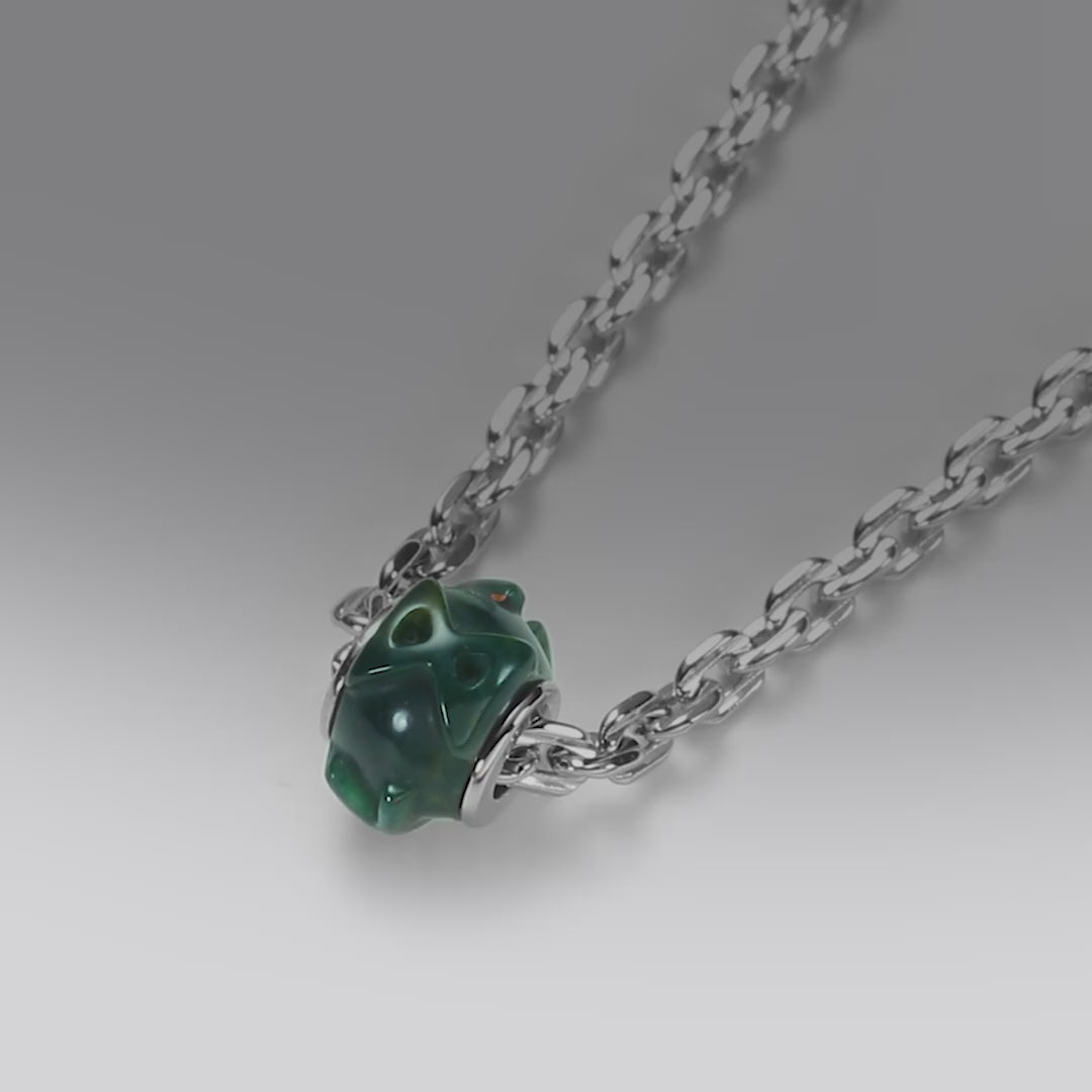 The piece is paired with a sterling silver cable-angle chain, its links connected at 45-degree angles to reflect light in subtle rhythm while ensuring both durability and comfort. With an adjustable length of 45 + 5 cm, the pendant rests naturally at the chest, whether worn alone or layered.