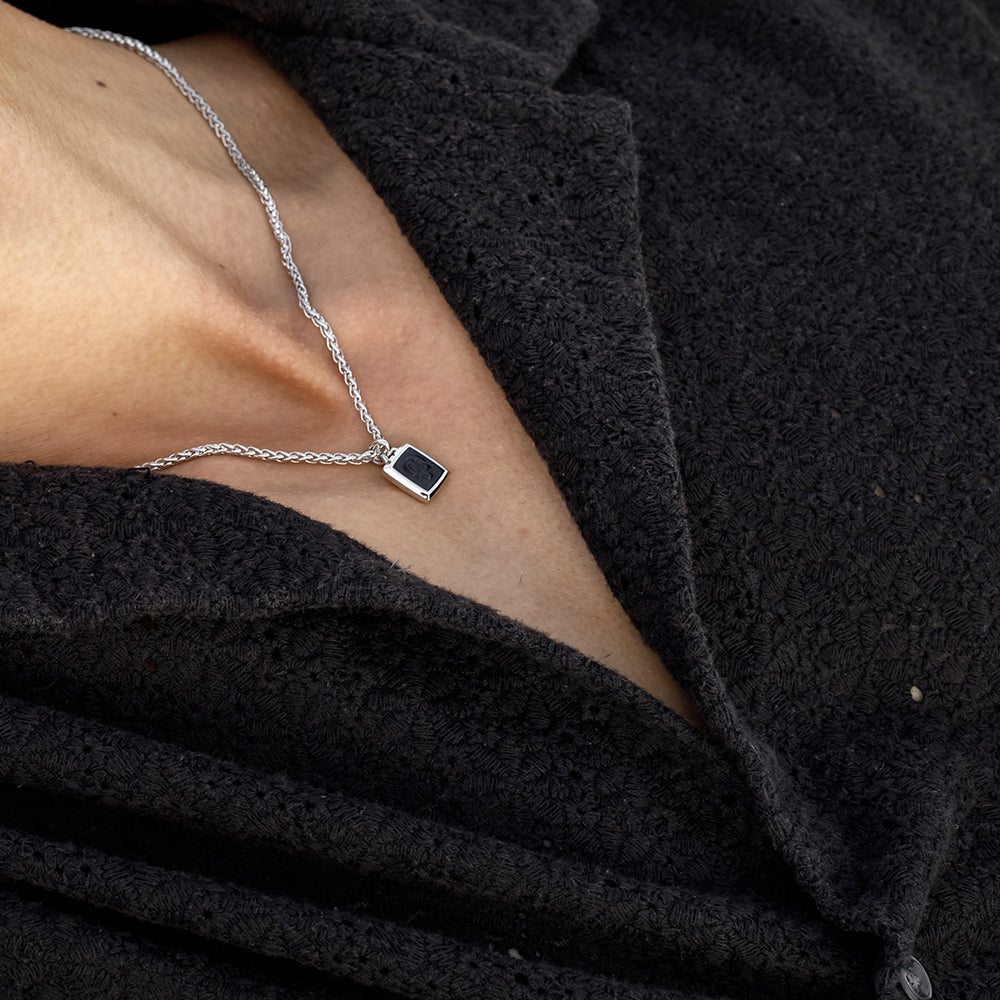 Engraved with runes and paired with cable-angle chain, it balances design presence with comfort—