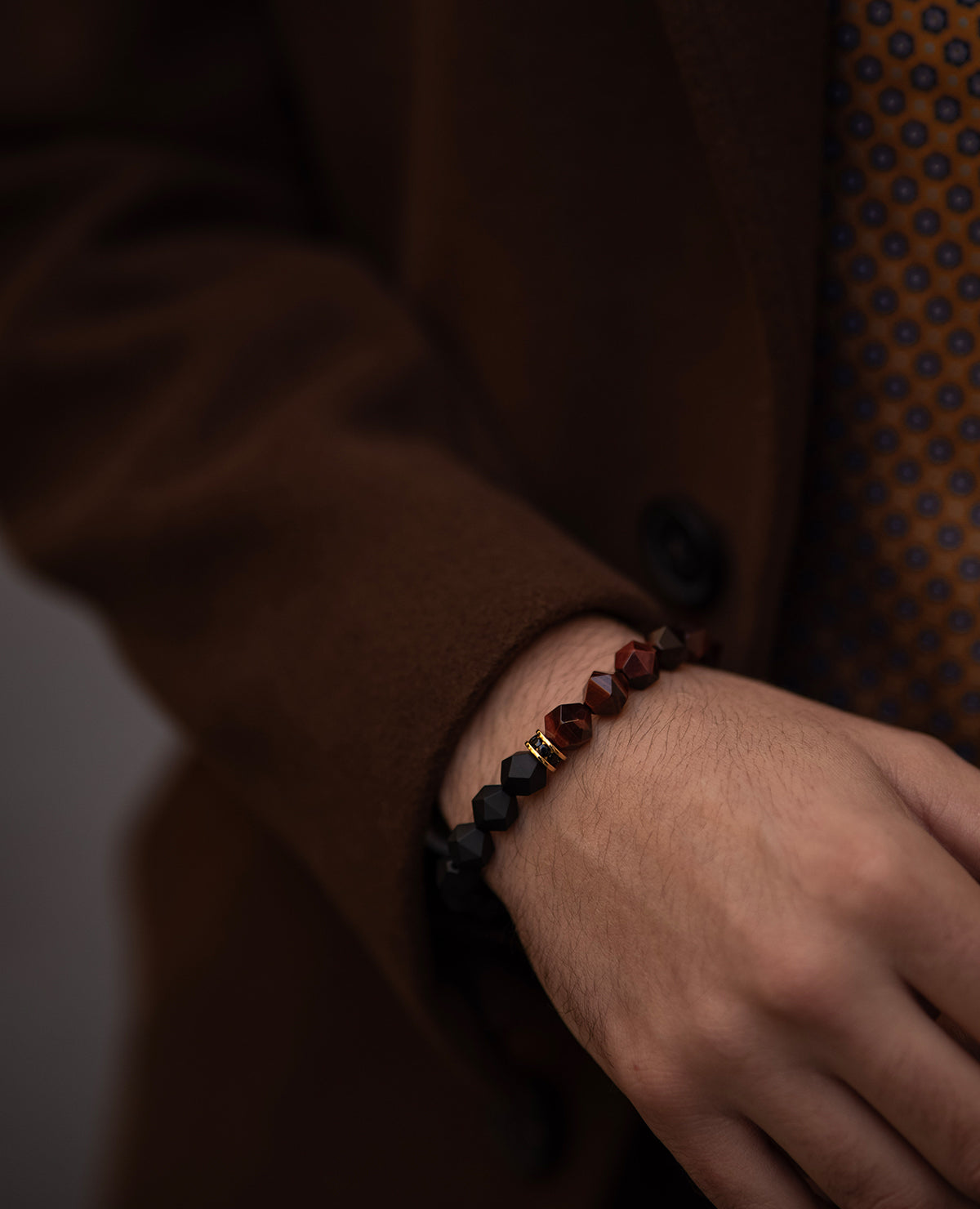 Roaring Tiger Bracelet Onyx & Red Tiger Eye