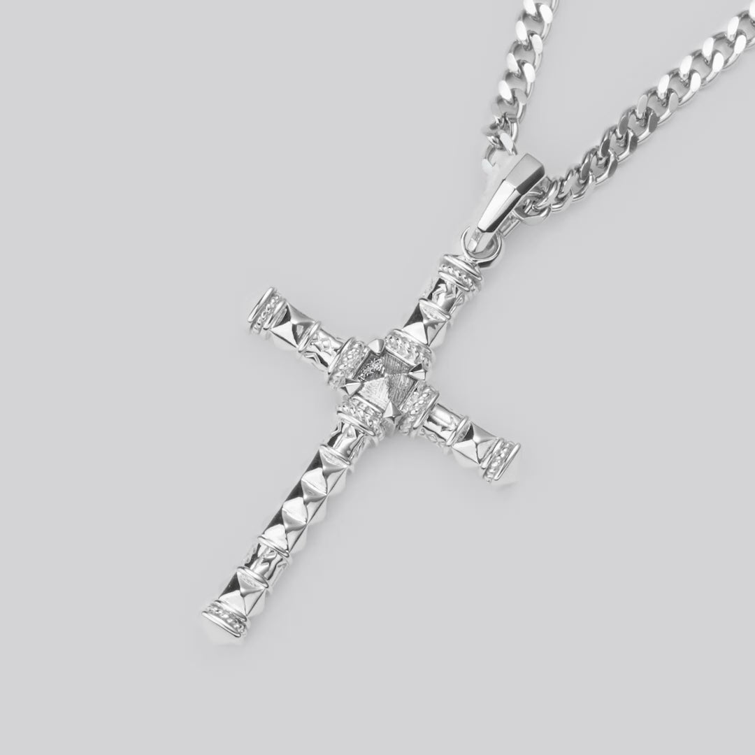 Runes-Engraved Meteorite Cross Necklace Necklaces AWNL Silver Set 55cm