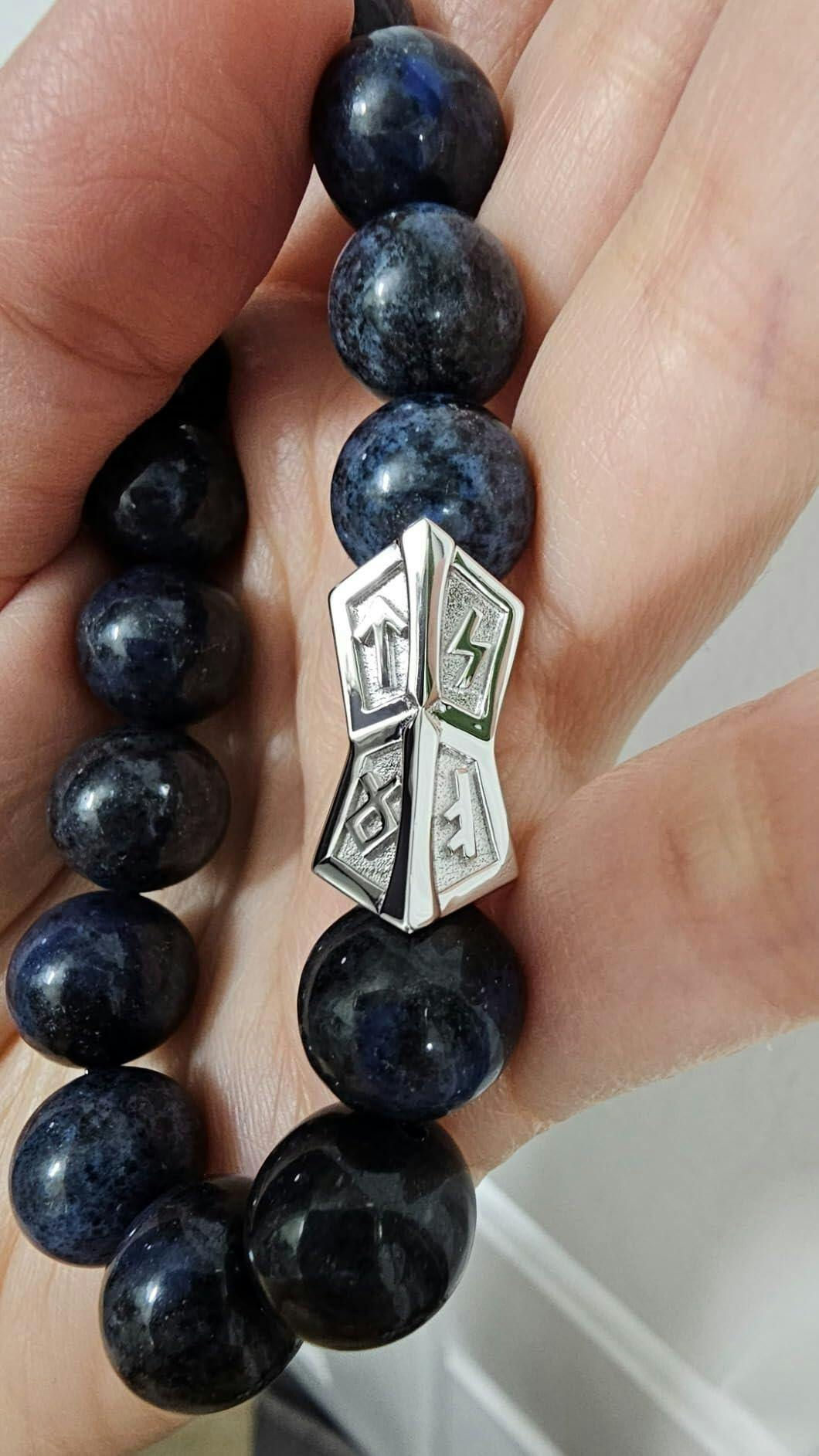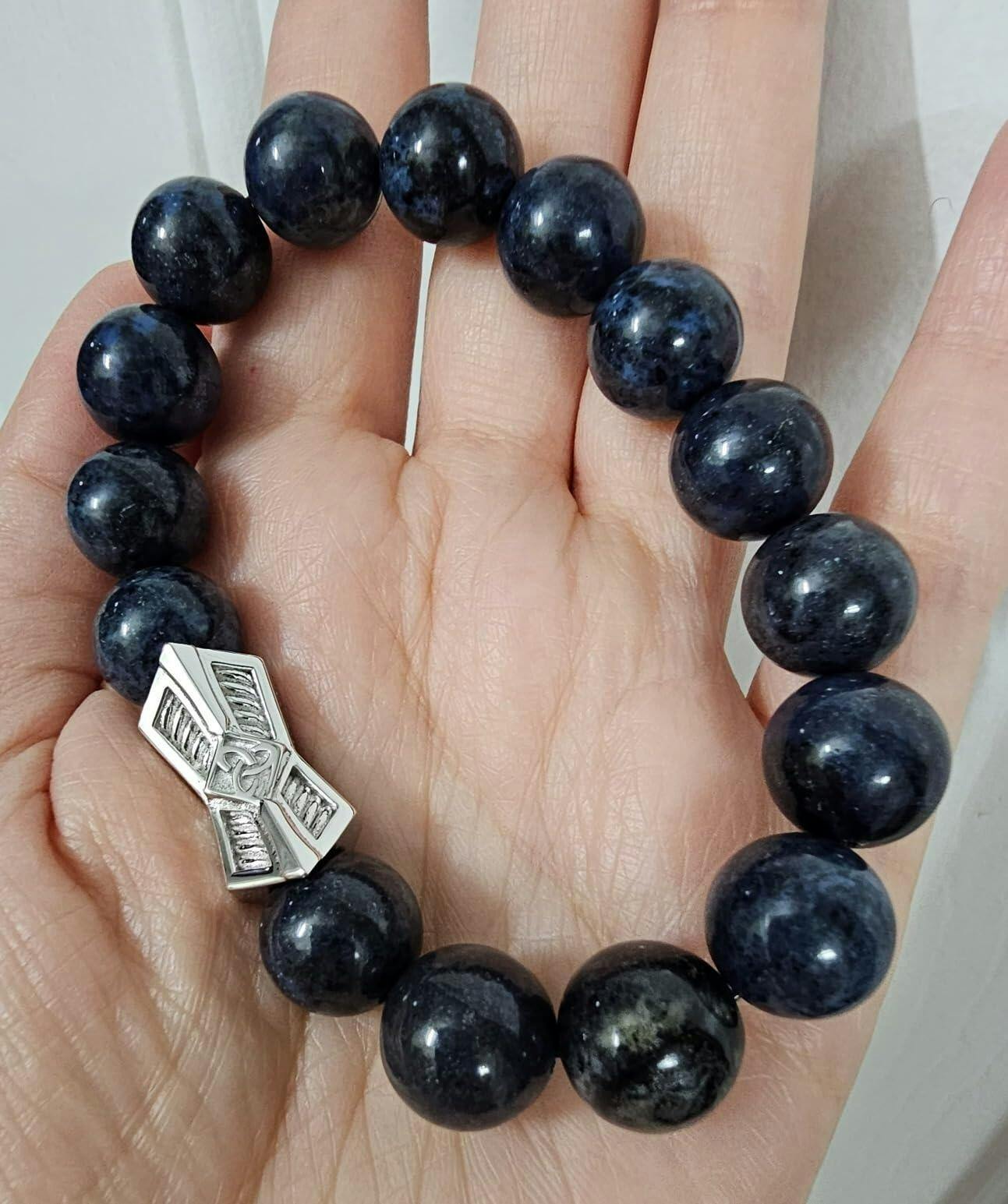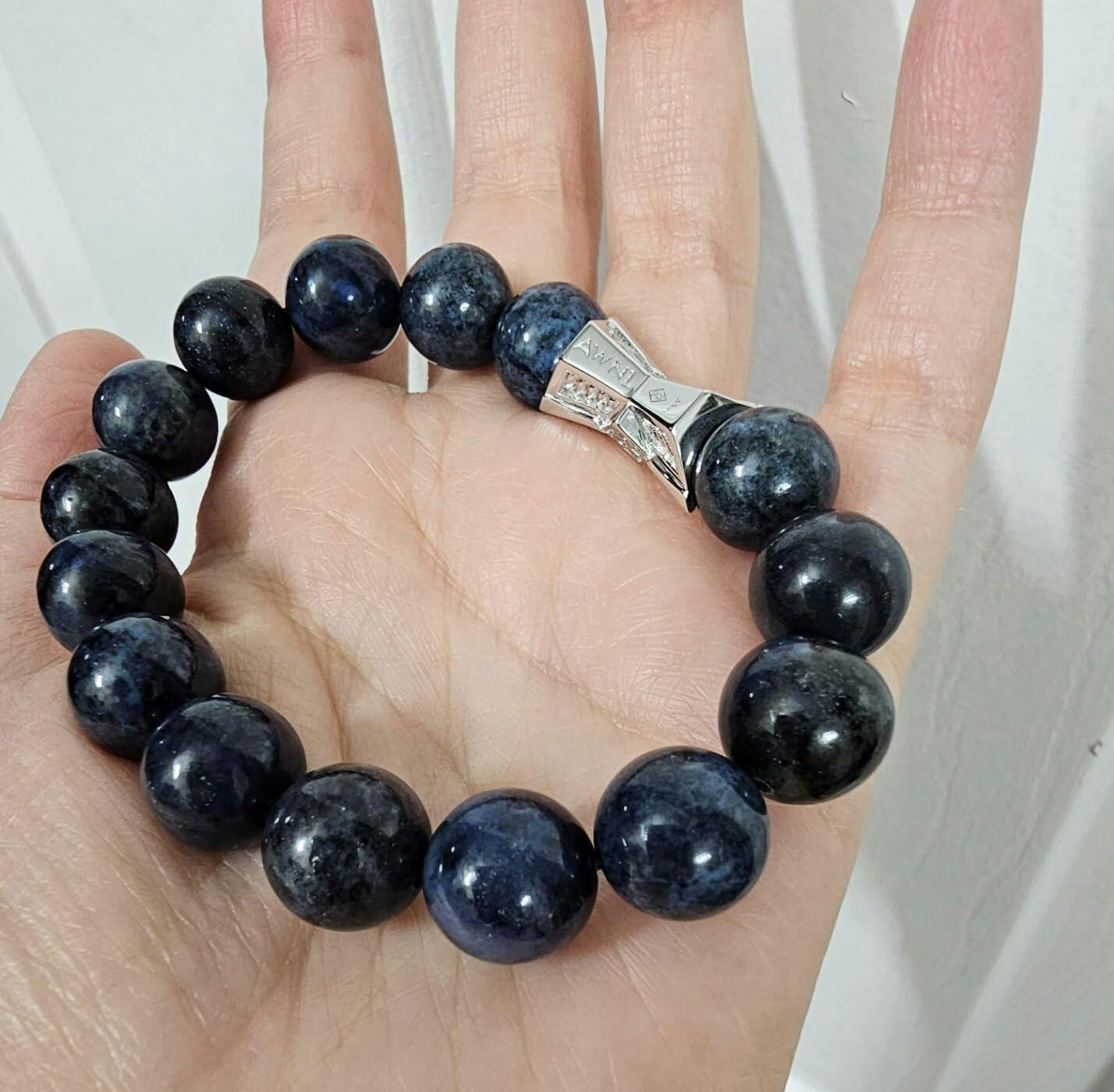 The long list of stuff you're not supposed to expose the bracelet to makes it obvious you can expect to see rusting and tarnishing over time (although I think some of these details apply specifically to other items this company sells and not the blue stone). The bracelet came vacuum-sealed as well. I've never had a dumortiertite bracelet before, so I'm not sure what to expect. Dumortiertite quartz is a denim blue stone, often used as a cheaper substitute for lapis lazuli despite being somewhat rare itself, which is said to represent insight, self-reliance, and patience/emotional balance, and aiding you to remember your dreams better and greater intuition in the daytime. So I thought it seems well suited for me. It has Mohs 7 hardness so it is decently hardy. The elastic string does not seem too flimsy so far. A nice gift for a older students and entrepreneur types, in particular.