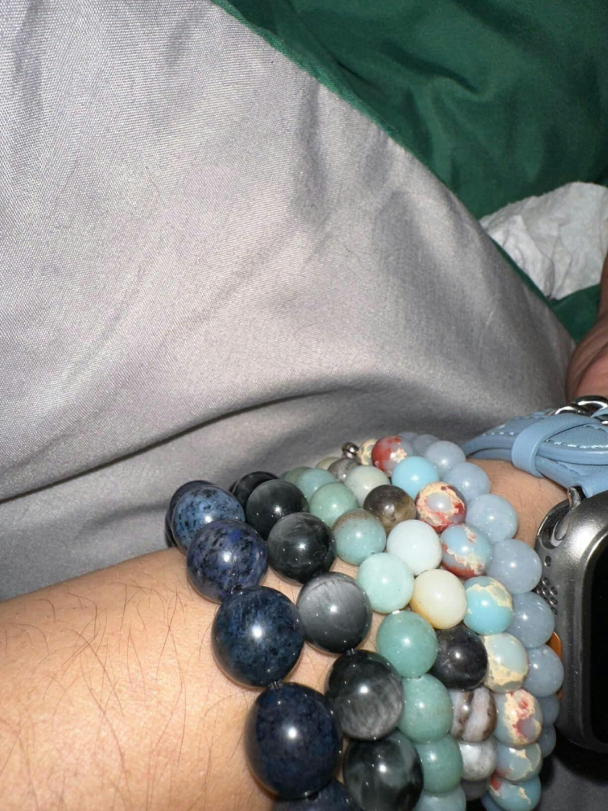 Truthfully speaking, I think the cost of this is a little absurdly high, in general it's something you could make yourself for much less given the material costs. But it looks very nice and is certainly packaged up nicely for gifting. The beads are a bit chonkier than I expected, and I have a 6.0 inch wrist so it's just slightly overly large for me but it looks great paired with a large watch, which can keep it higher up on my arm. The rich stone pigmentation is nice and attractive.