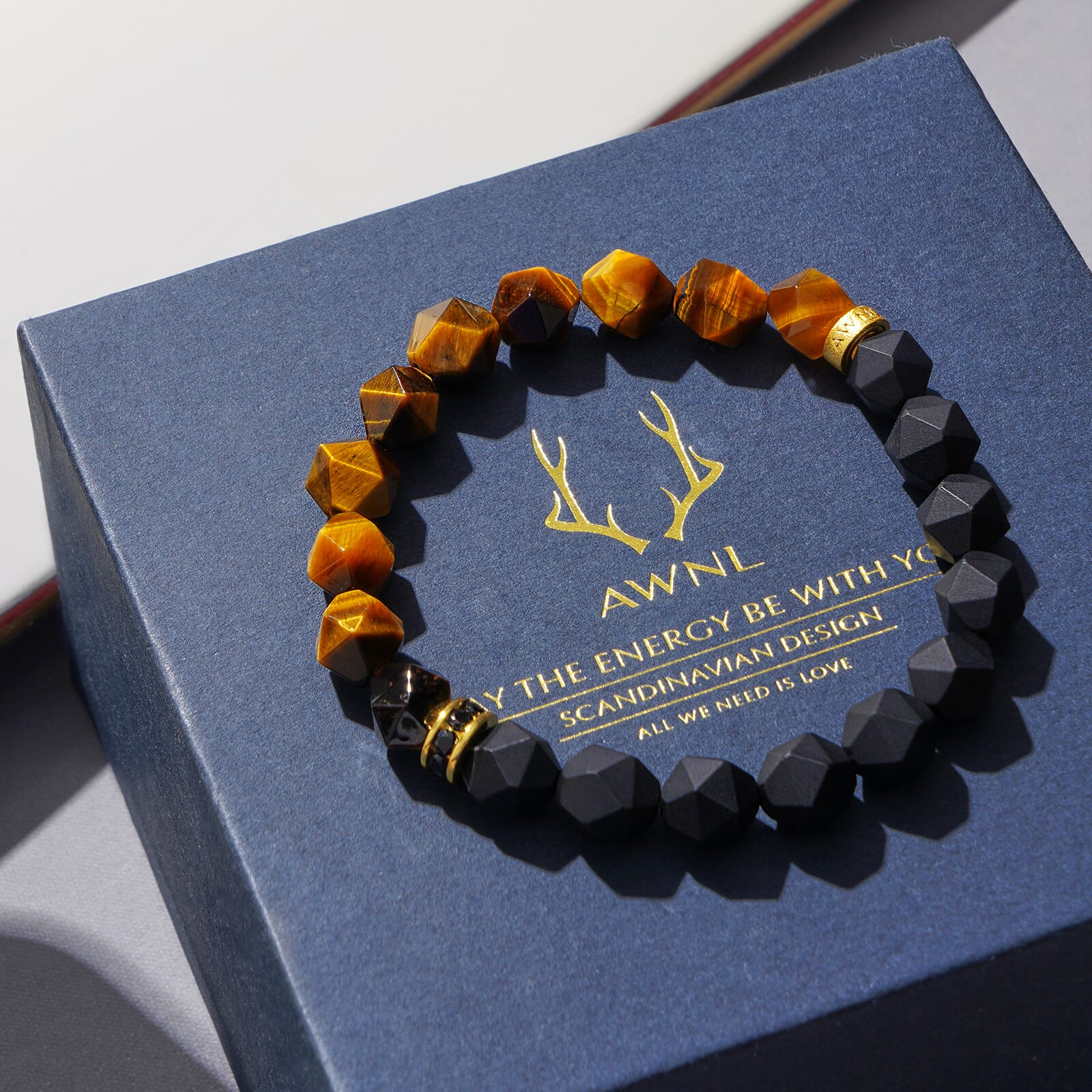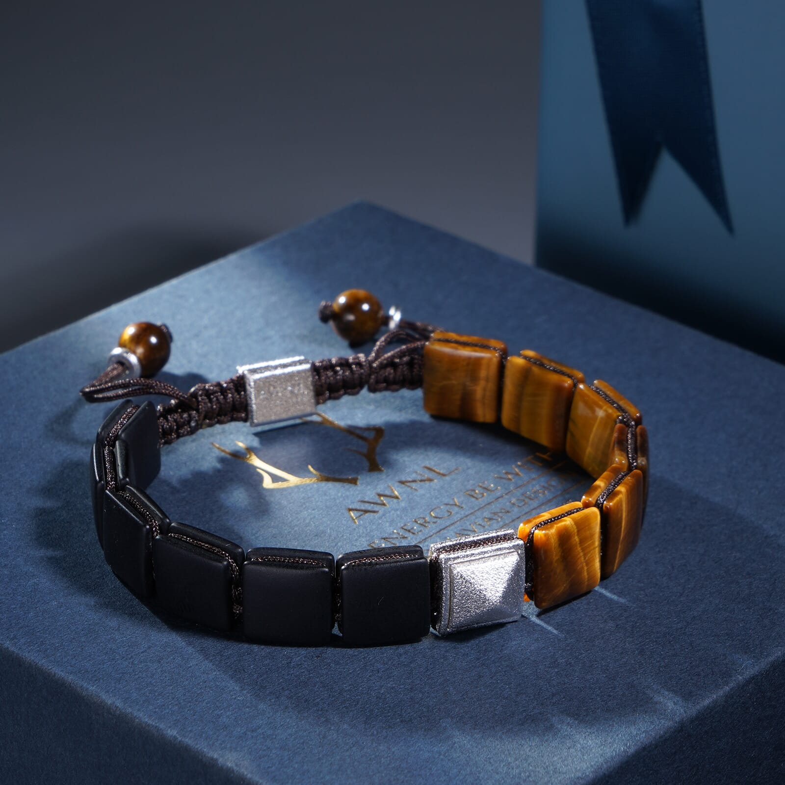 Pyramid Tiger Eye & Onyx Macrame Bracelet