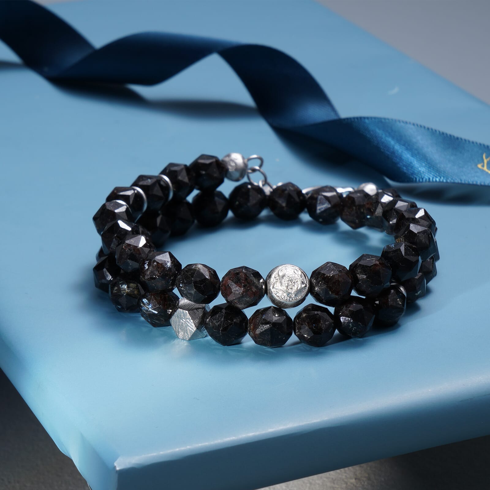 Violet Double Wrap Rose Quartz & Meteorite Bracelet