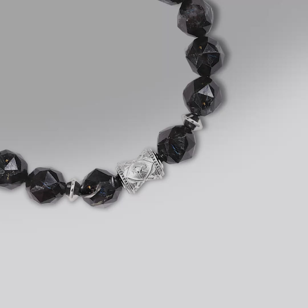 Known as the "Sorcerer's Stone," Nuummite is one of the oldest minerals on Earth,Its deep black color, infused with golden flashes, adds a touch of rare elegance to the bracelet.