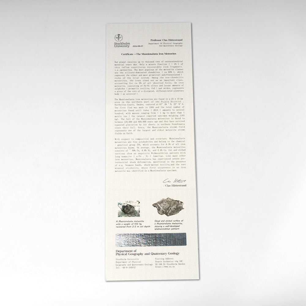 - Each piece comes with a warranty certificate; designs differ between non-meteorite and meteorite series, all containing authenticity codes